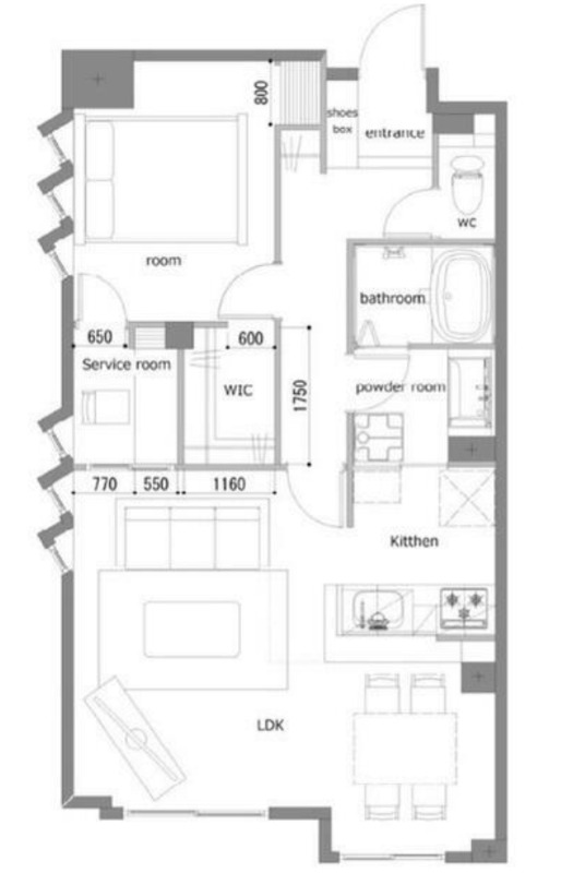 | 間取り | 1SLDK | 面積 | 56㎡ |