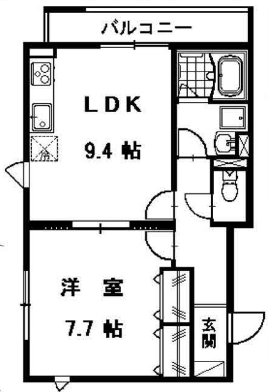 洋室 7.7畳 、 LDK 9.4畳