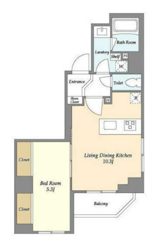 洋室 5.3畳 、 LDK 10.3畳