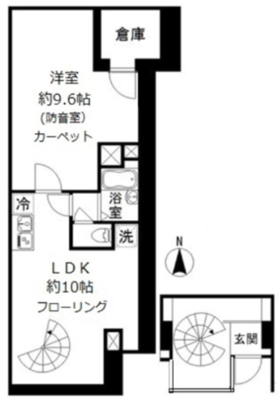 ガス(都市ガス)、インターホン(TVモニター付き)、オートロック、専用ゴミ置き場(あり)、フローリング、メゾネット、防音室、玄関ホール、全居室収納、バス・トイレ別(別室)、シャワー、脱衣所、温水洗浄便座、洗濯機置き場(室内)、コンロ口数(2)、コンロ種類(IH)、システムキッチン、エアコン、エアコン台数(全室)、CATV、光ファイバー、インターネット使用料無料 |