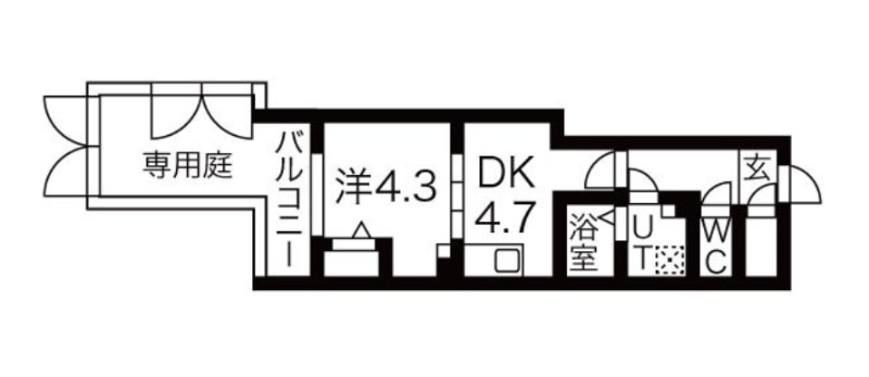 洋室 4.3畳 、 DK 4.7畳