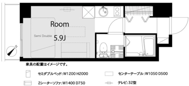 洋室 5.9畳 、 K 畳