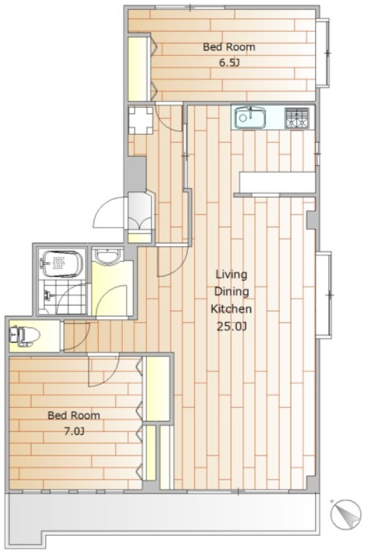 | 間取り詳細 | 洋室 7畳 、 洋室 6.5畳 、 LDK 25畳 |