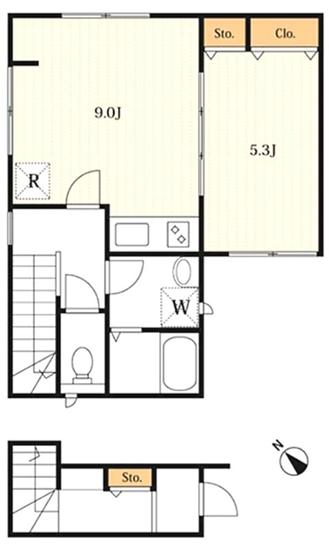 洋室 5.3畳 、 LDK 9畳
