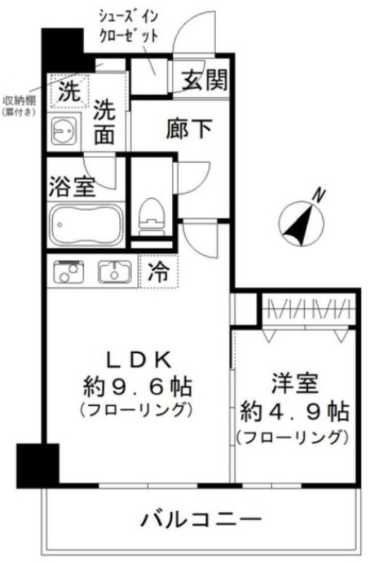 洋室 4.9畳 、 LDK 9.6畳