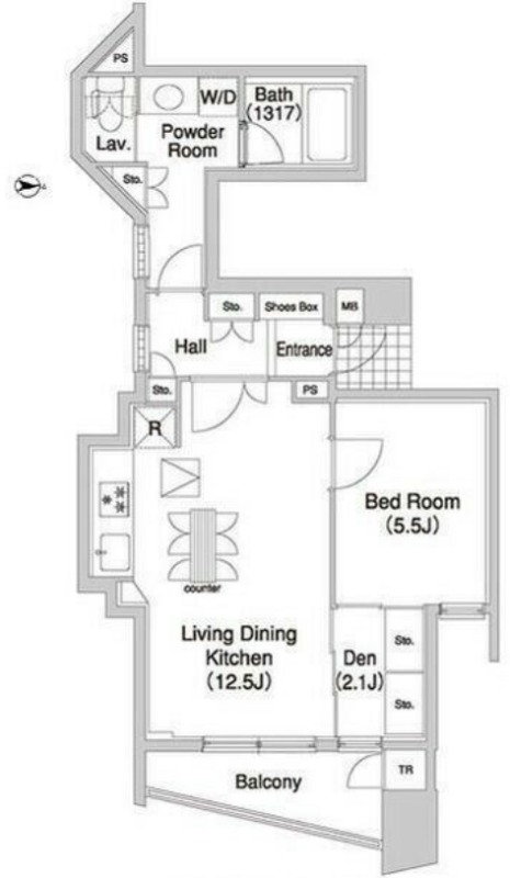 | 間取り詳細 | 洋室 5.5畳 、 LDK 12.5畳 、 S 2.1畳 |