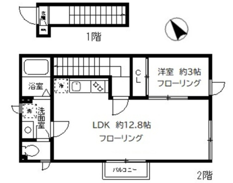 洋室 3畳 、 LDK 12.8畳