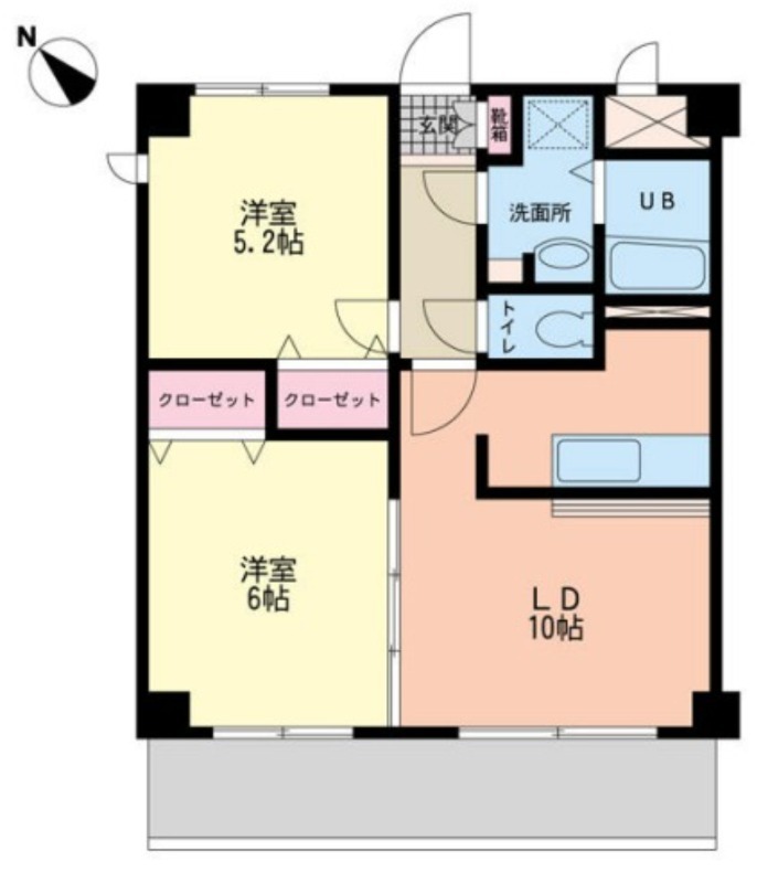 | 間取り詳細 | 洋室 6畳 、 洋室 5.2畳 、 LDK 10畳 |