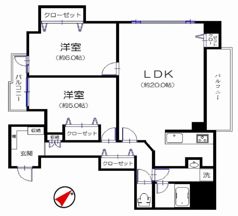 | 間取り詳細 | 洋室 6畳 、 洋室 5畳 、 LDK 20畳 |