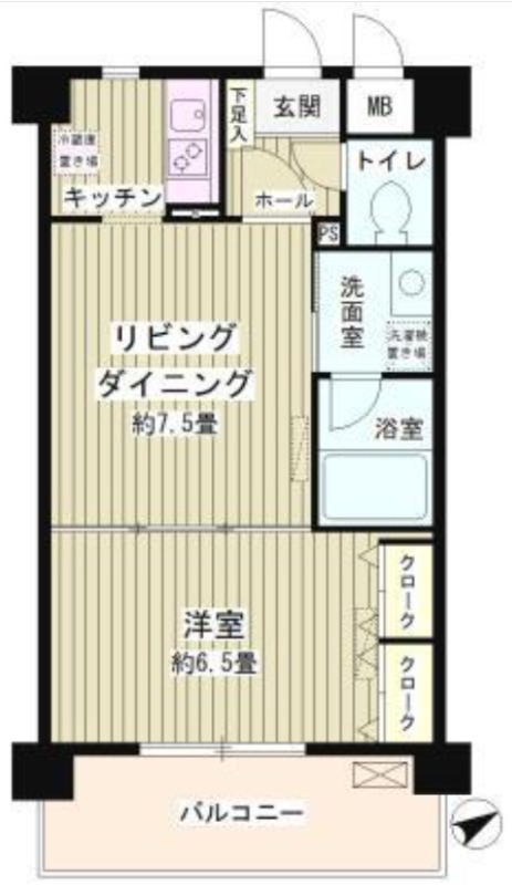 | 間取り詳細 | 洋室 6.5畳 、 LD 7.5畳 、 K 畳 |