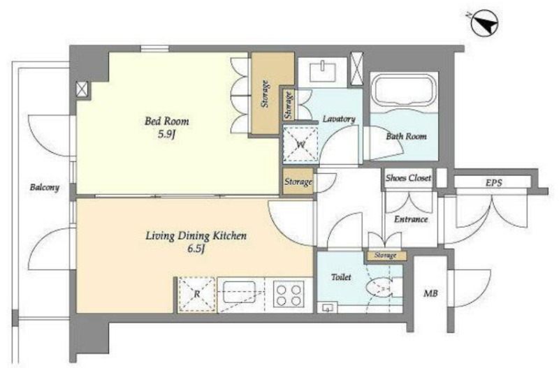 洋室 5.9畳 、 DK 6.5畳