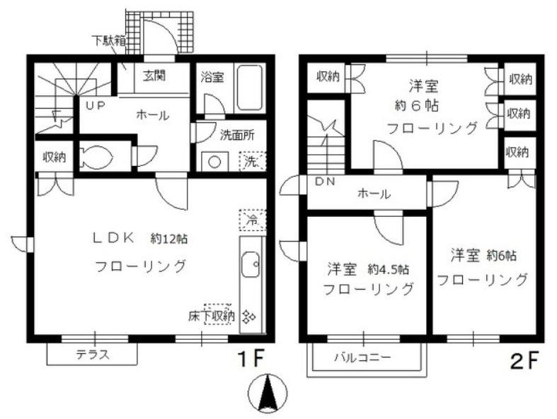 洋室 6畳 洋室 4.5畳 LDK 12畳 |