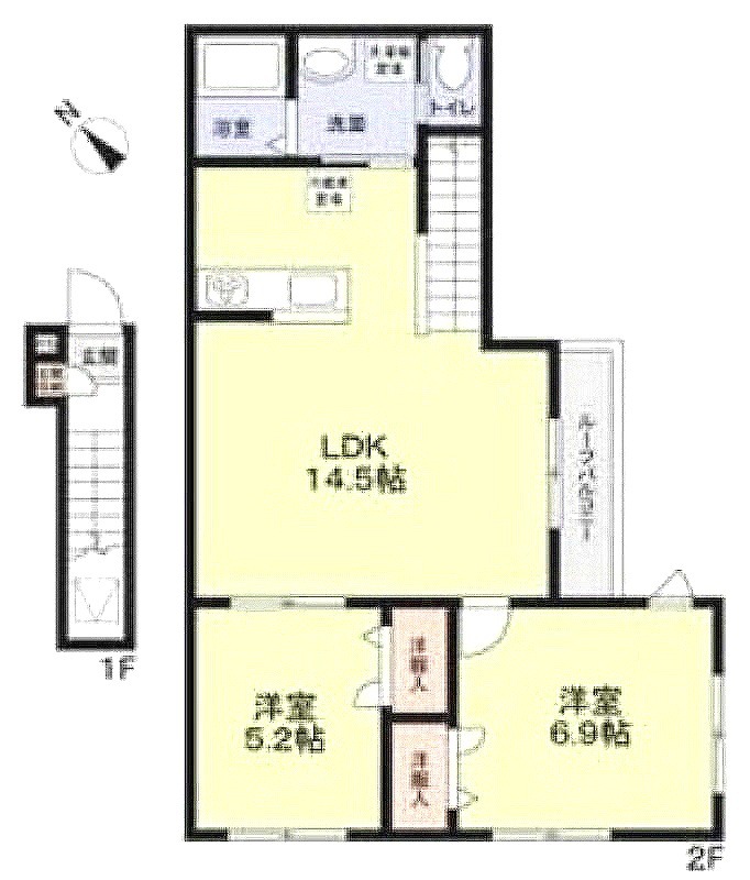 | 間取り詳細 | 洋室 6.9畳 、 洋室 5.2畳 、 LDK 14.5畳 |