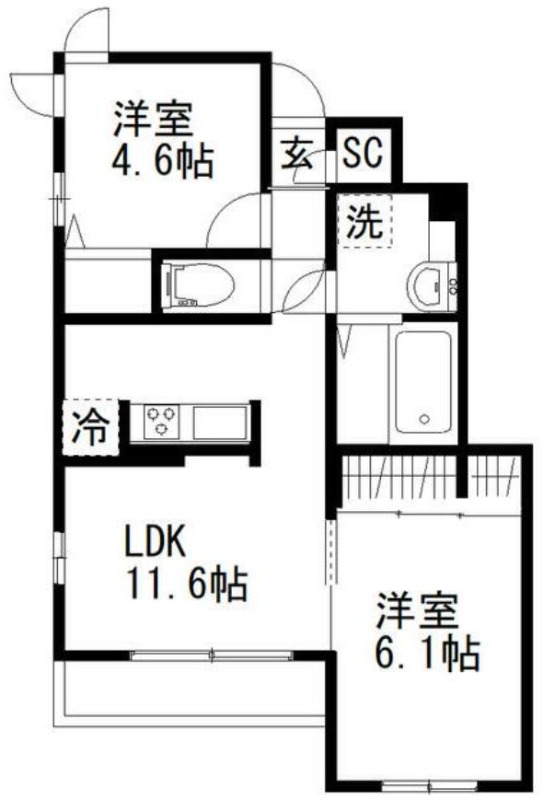 | 間取り詳細 | 洋室 6.1畳 、 洋室 4.6畳 、 LDK 11.6畳 |