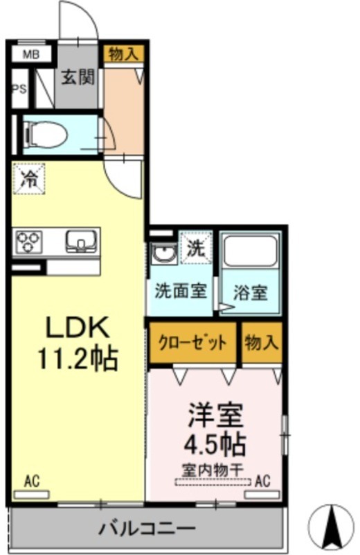 洋室 4.5畳 、 LDK 11.2畳