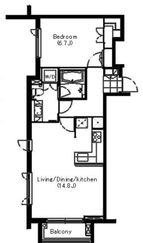 洋室 6.7畳 、 LDK 14.8畳