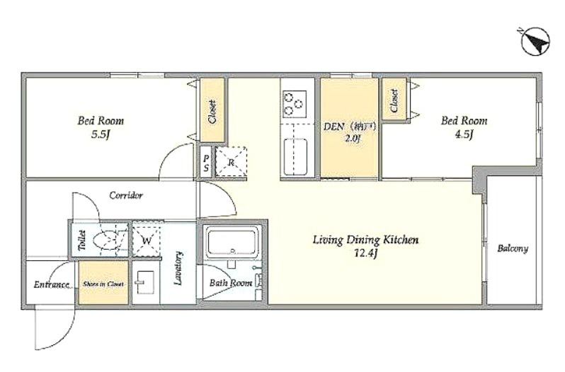 | 間取り詳細 | 洋室 5.5畳 、 洋室 4.5畳 、 LDK 12.4畳 、 S 2畳 |