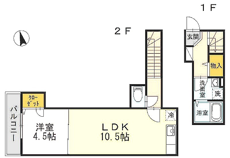 洋室 4.5畳 、 LDK 10.5畳