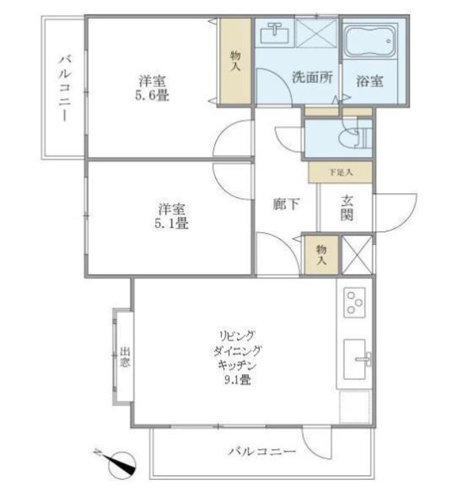 | 間取り詳細 | 洋室 5.6畳 、 洋室 5.1畳 、 LDK 9.1畳 |