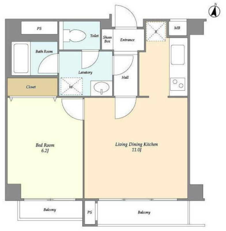 洋室 6.2畳 、 LDK 11畳