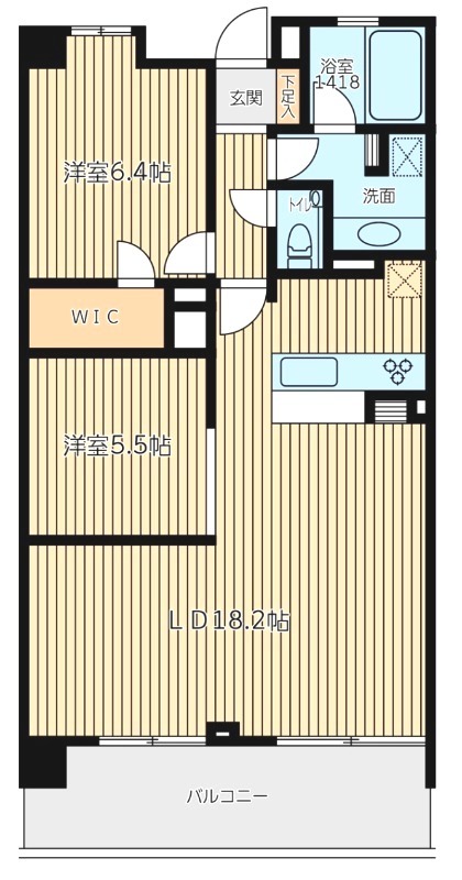 | 間取り詳細 | 洋室 6.4畳 、 洋室 5.5畳 、 LDK 18.2畳 |