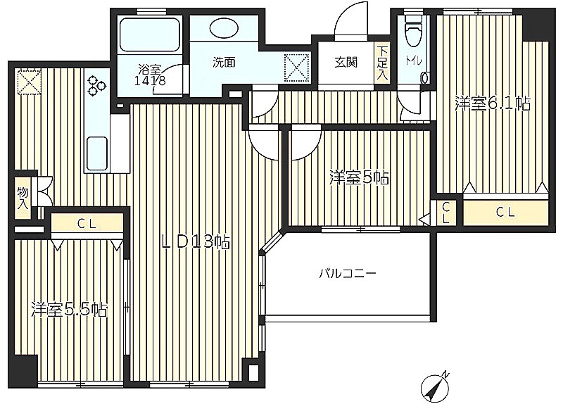 | 間取り詳細 | 洋室 6.1畳 、 洋室 5.5畳 、 洋室 5畳 、 LDK 13畳 |