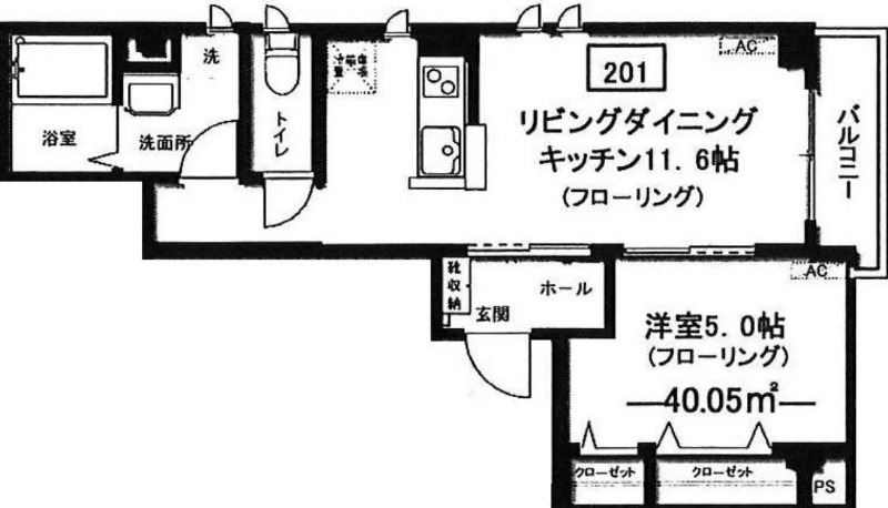 洋室 5畳 、 LDK 11.6畳