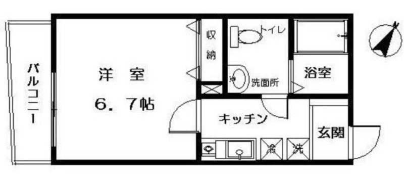 洋室 6.7畳 、 K 畳