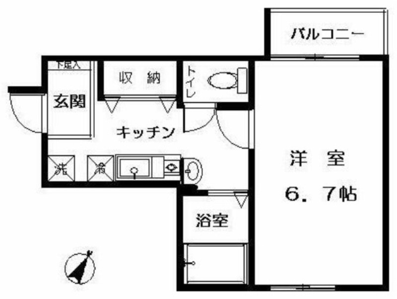 洋室 6.7畳 、 K 畳