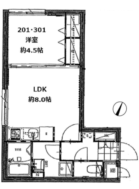 洋室 4.5畳 、 LDK 8畳