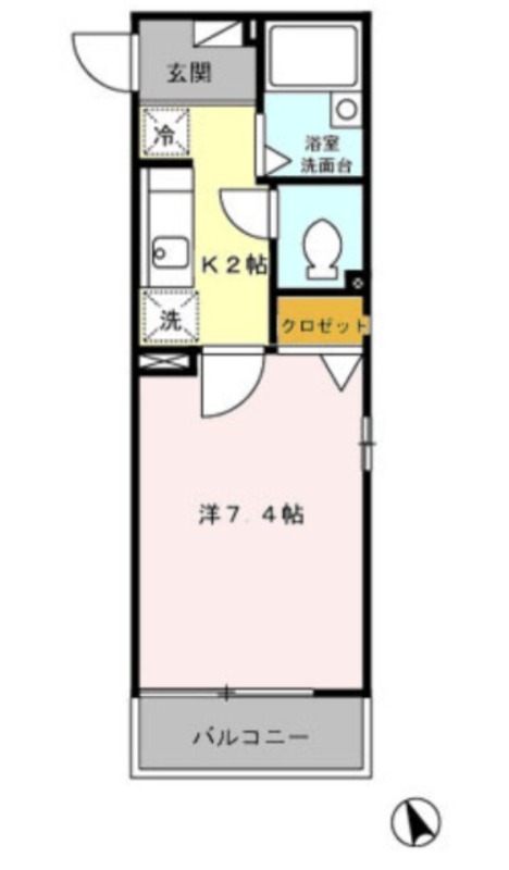 洋室 7.4畳 、 K 畳