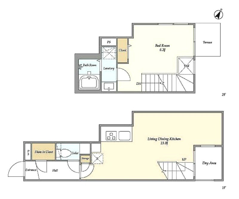 洋室 6.2畳 、 LDK 13畳