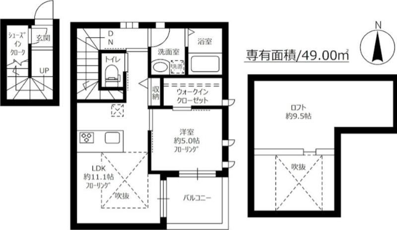 洋室 5畳 、 LDK 11.1畳