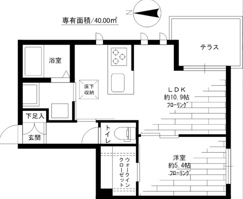洋室 5.4畳 、 LDK 10.9畳