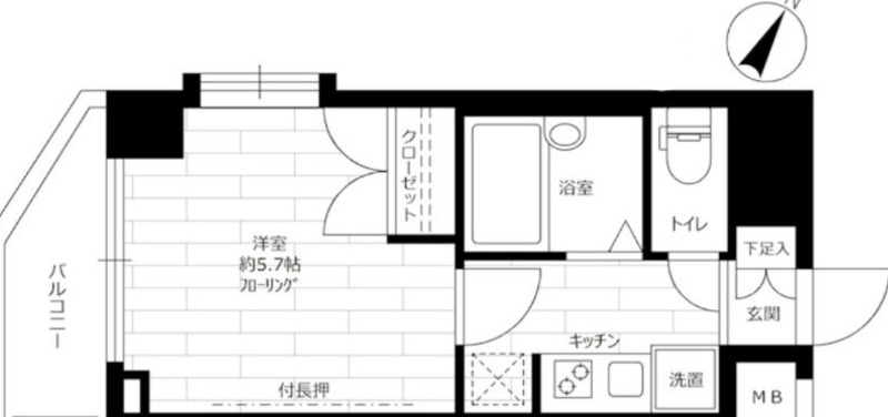 洋室 5.7畳 、 K 畳