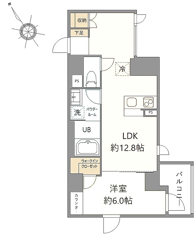 洋室 6畳 、 LDK 12.8畳