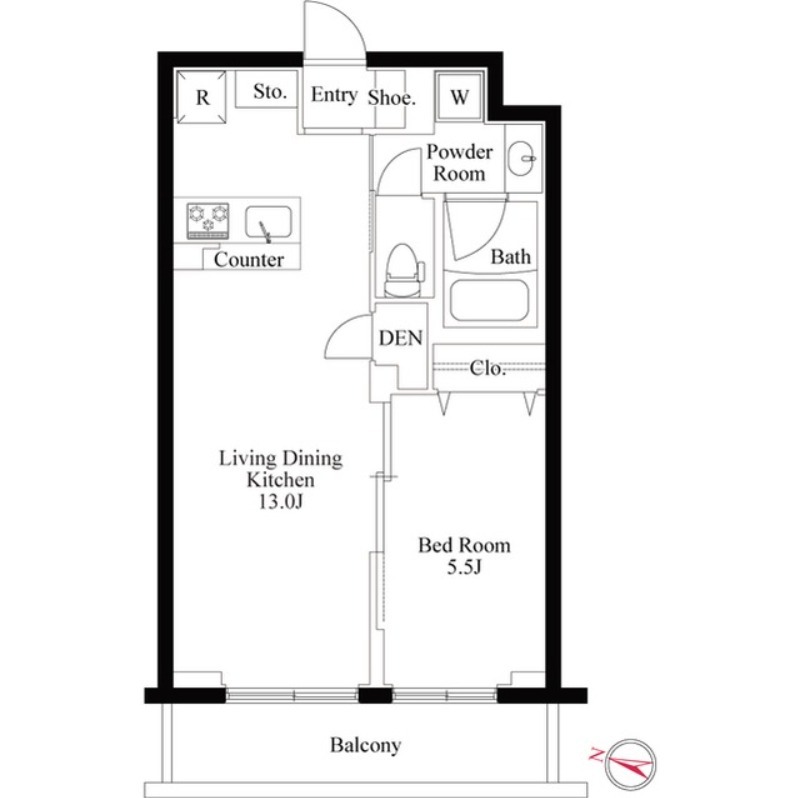 洋室 5.5畳 、 LDK 13畳