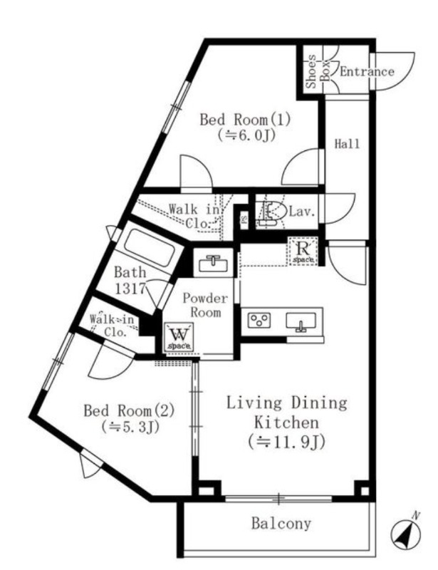 | 間取り詳細 | 洋室 6畳 、 洋室 5.3畳 、 LDK 11.9畳 |