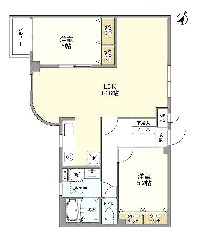 | 間取り詳細 | 洋室 5.2畳 、 洋室 5畳 、 LDK 16.6畳 |