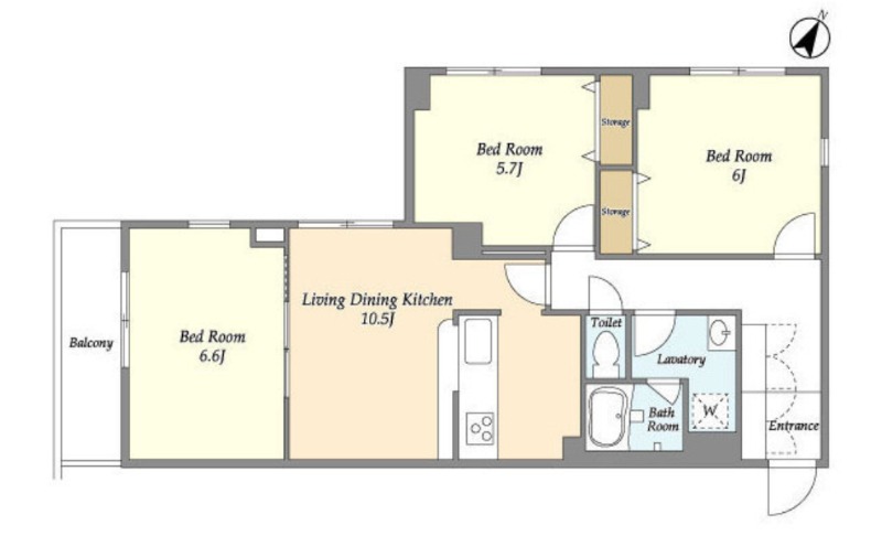 | 間取り詳細 | 洋室 6.6畳 、 洋室 6畳 、 洋室 5.7畳 、 LDK 10.5畳 |