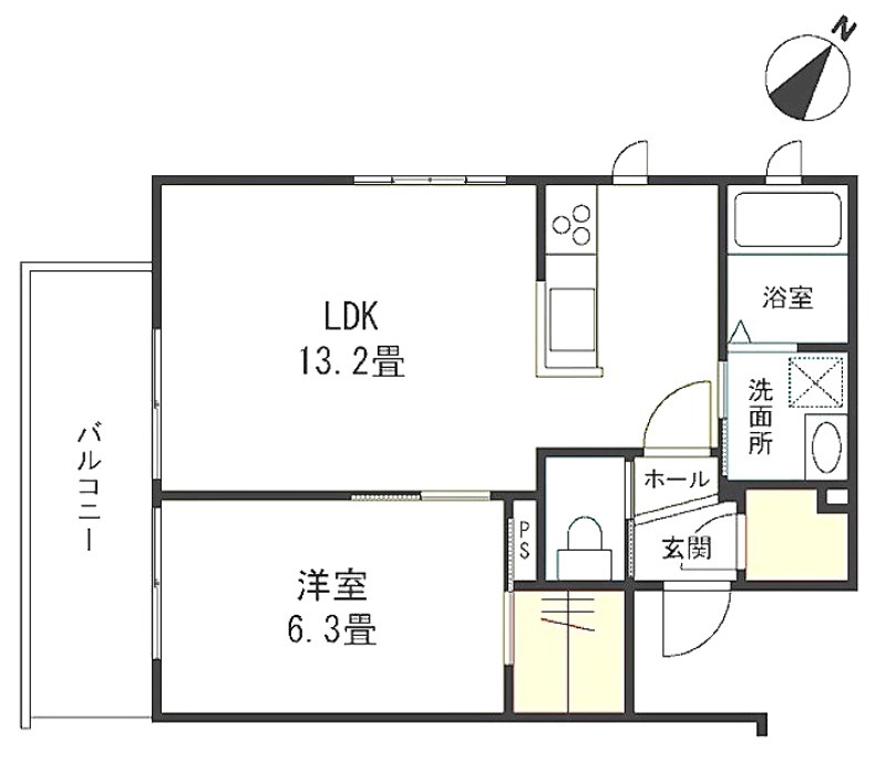 洋室 6.3畳 、 LDK 13.2畳