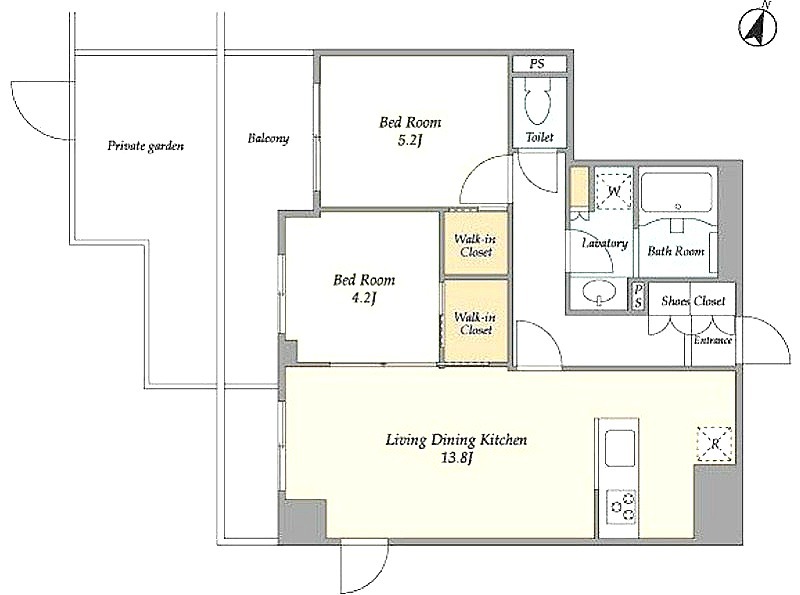 | 間取り詳細 | 洋室 5.2畳 、 洋室 4.2畳 、 LDK 13.8畳 |