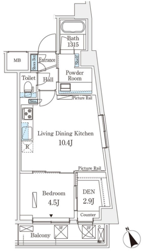 | 間取り詳細 | 洋室 4.5畳 、 LDK 10.4畳 、 S 2.9畳 |