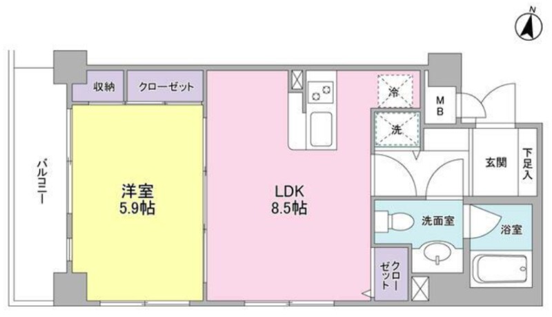 洋室 5.9畳 、 LDK 8.5畳