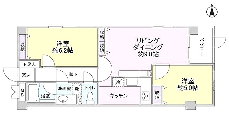 | 間取り詳細 | 洋室 6.2畳 、 洋室 5畳 、 LDK 9.8畳 |