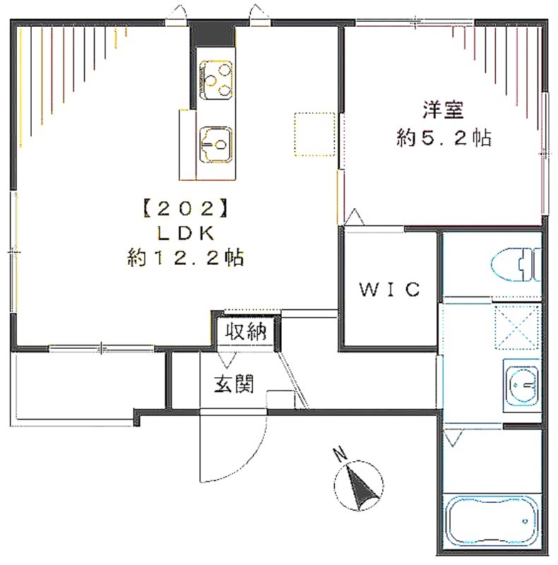 | 間取り詳細 | 洋室 5.2畳 、 LDK 12.2畳 |
