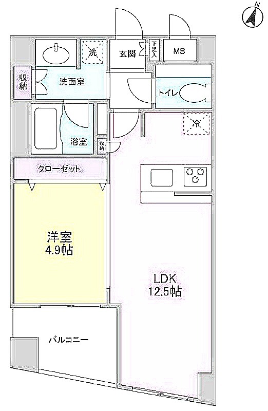 洋室 4.9畳 、 LDK 12.5畳