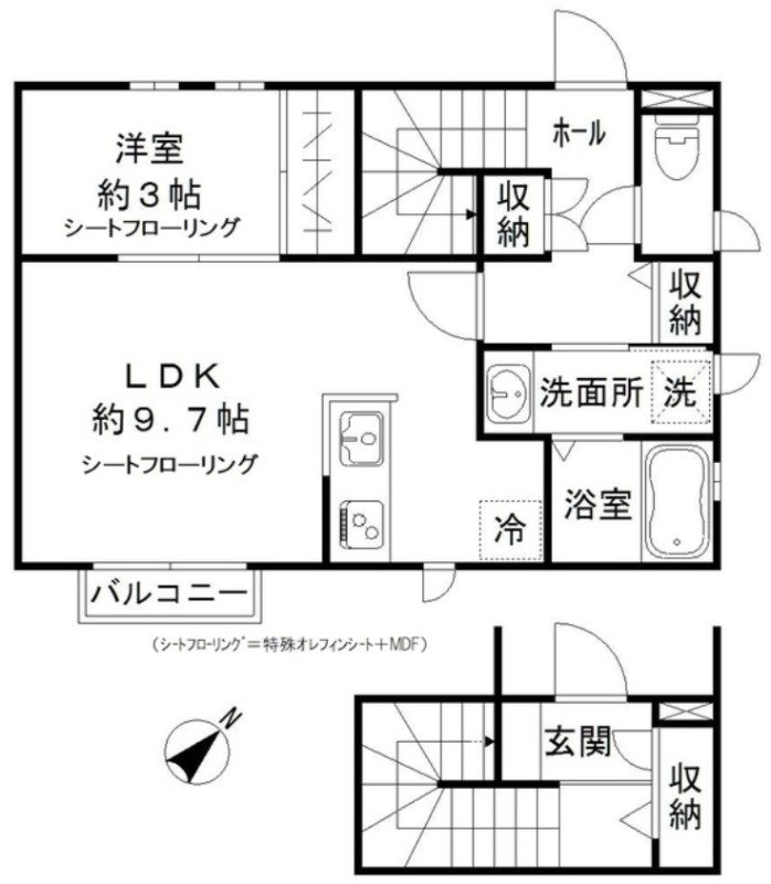 洋室 3畳 、 LDK 9.7畳