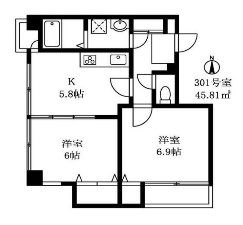 | 間取り | 2K | 面積 | 45.81㎡ |