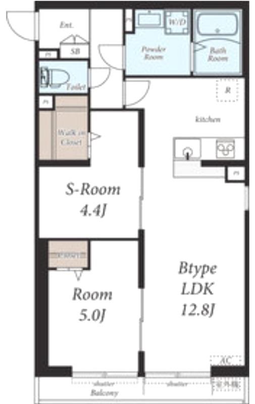 | 間取り詳細 | 洋室 5畳 、 LDK 12.8畳 、 S 4.4畳 |